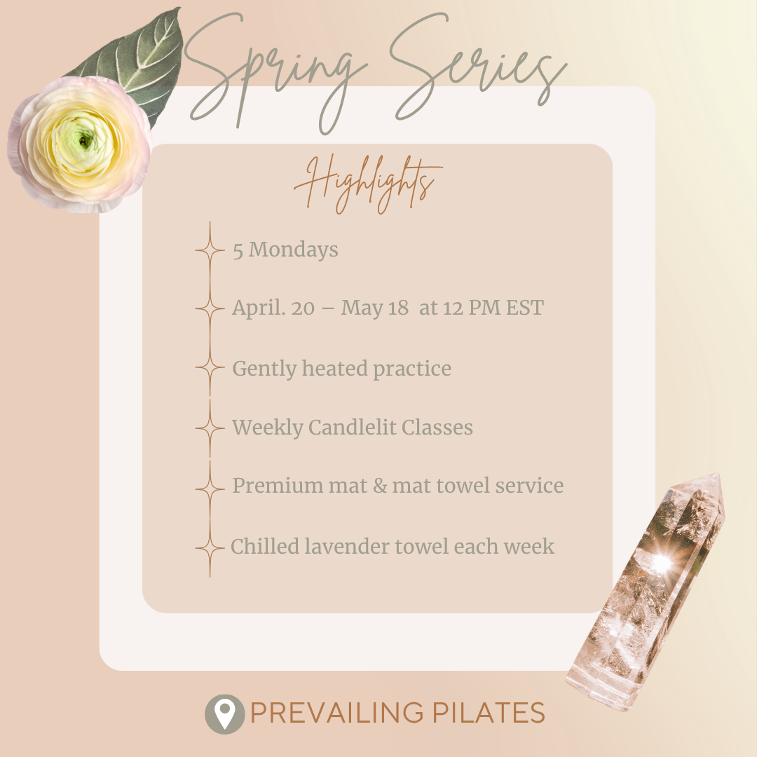 This series offers a journey of progressive unwinding. As the weeks unfold, you’ll build a deeper familiarity with your body’s needs, cultivating strength and flexibility while developing sustainable breath and centering practices that leave you feeling balanced, clear, and prepared for the week ahead. Your weekly spring reset awaits.